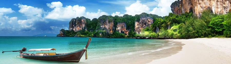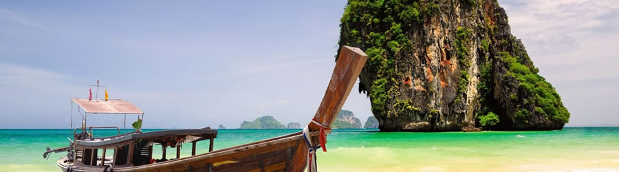 Después de tantas playas, y como propina, os proponemos una playa preciosa en la parte continental de Tailandia. Es la famosa y preciosa playa de Railay, situada en la provincia del sur del país de Krabi, cerca de la ciudad homónima. Allí mismo está la impresionante playa de Phra Nang, que también tiene unas formaciones de piedra caliza impresionantes.