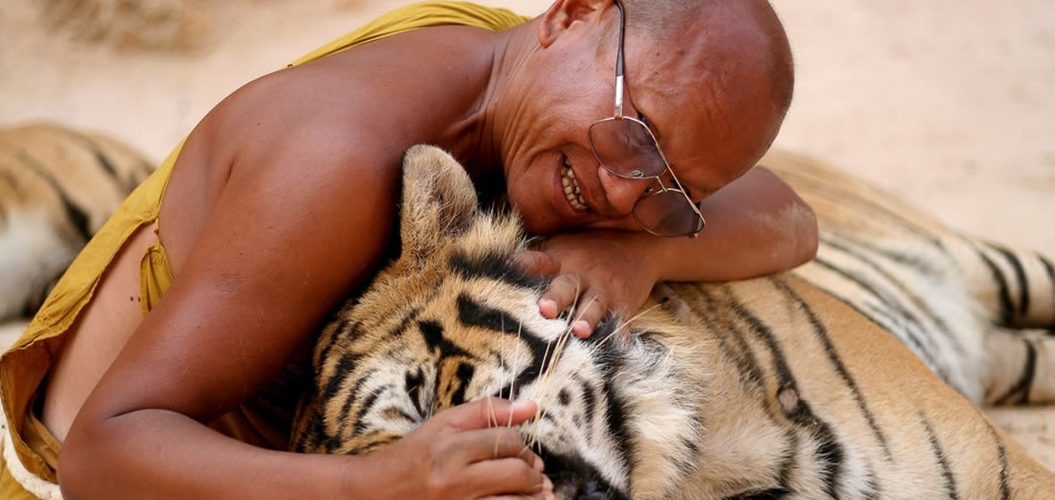 Kanchanaburi, conocida por su asociación con la línea de ferrocarril de la muerte, cuya construcción se cobró la vida de más de 100,000 peones asiáticos y 12,000 prisioneros de guerra aliados. Visita del famoso Puente sobre el Río Kwai, ubicado a 3 kilómetros a norte de esta ciudad. Continuamos visitando Museo de la Guerra, en el interior del Wat Chai Chumphon, los visitantes pueden ver tres réplicas de las cabañas de bambú que se utilizaban para alojar a los prosioneros de guerra. Para terminar, visita el templo de tigres o Wat Phra Luang Ta Bua donde viven todo un grupo de tigres. Los monjes se ocupan de sus cuidados y los turistas acuden al lugar para contemplarlos e incluso acariciarlos porque los monjes los han domesticado de tal modo que se comportan como felinos.